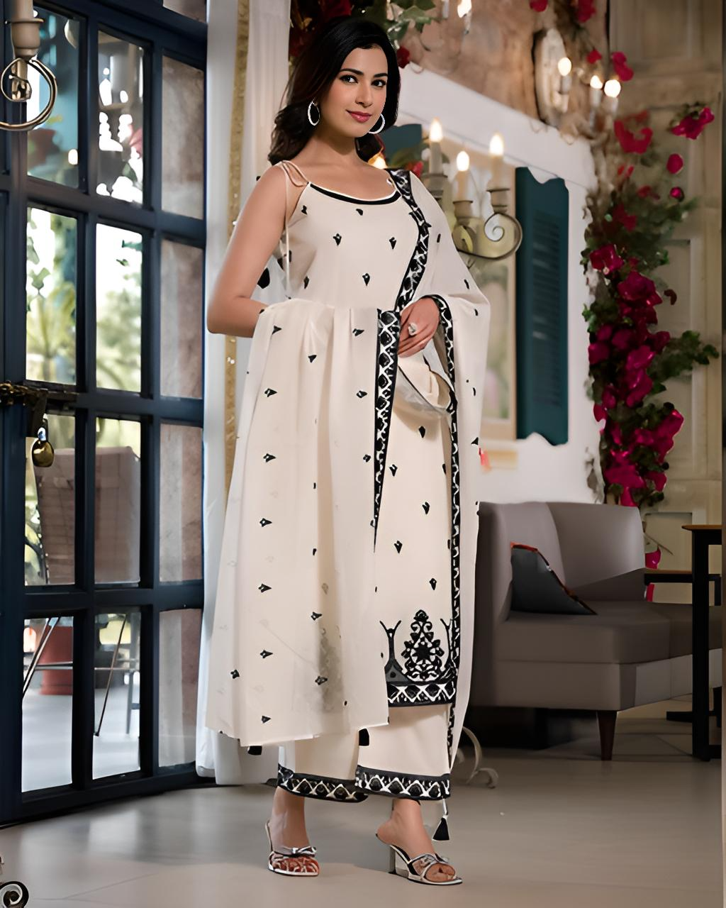 Ruhaniyat – Black & White Embroidered Pure Cotton Suit Set