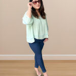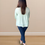 Sleeves: 3/4th balloon-style sleeves with cuffed finish