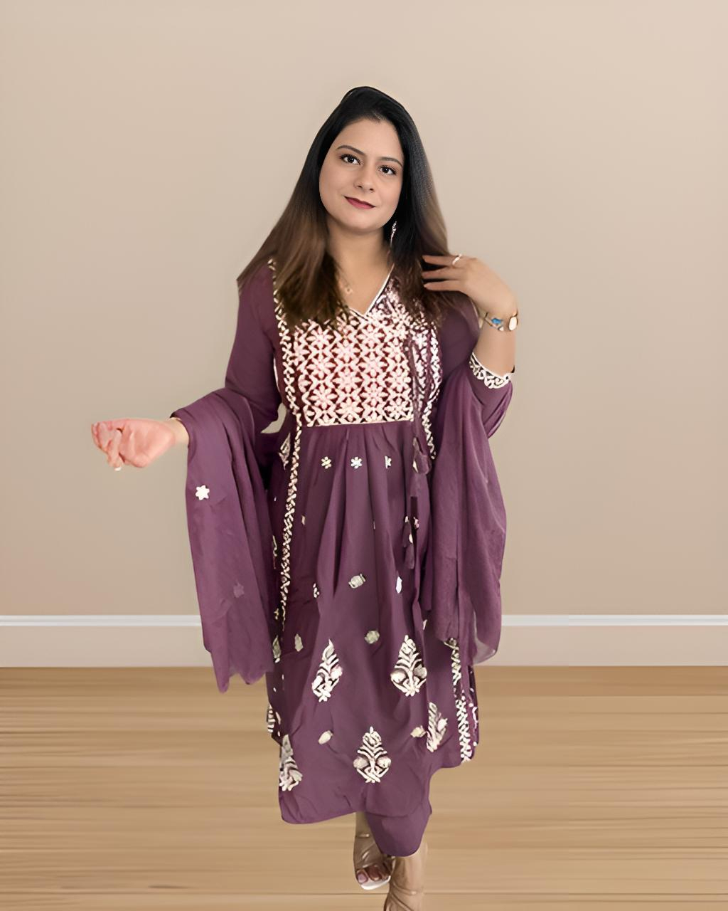 Sleeves: 3/4th sleeves with matching embroidered accents